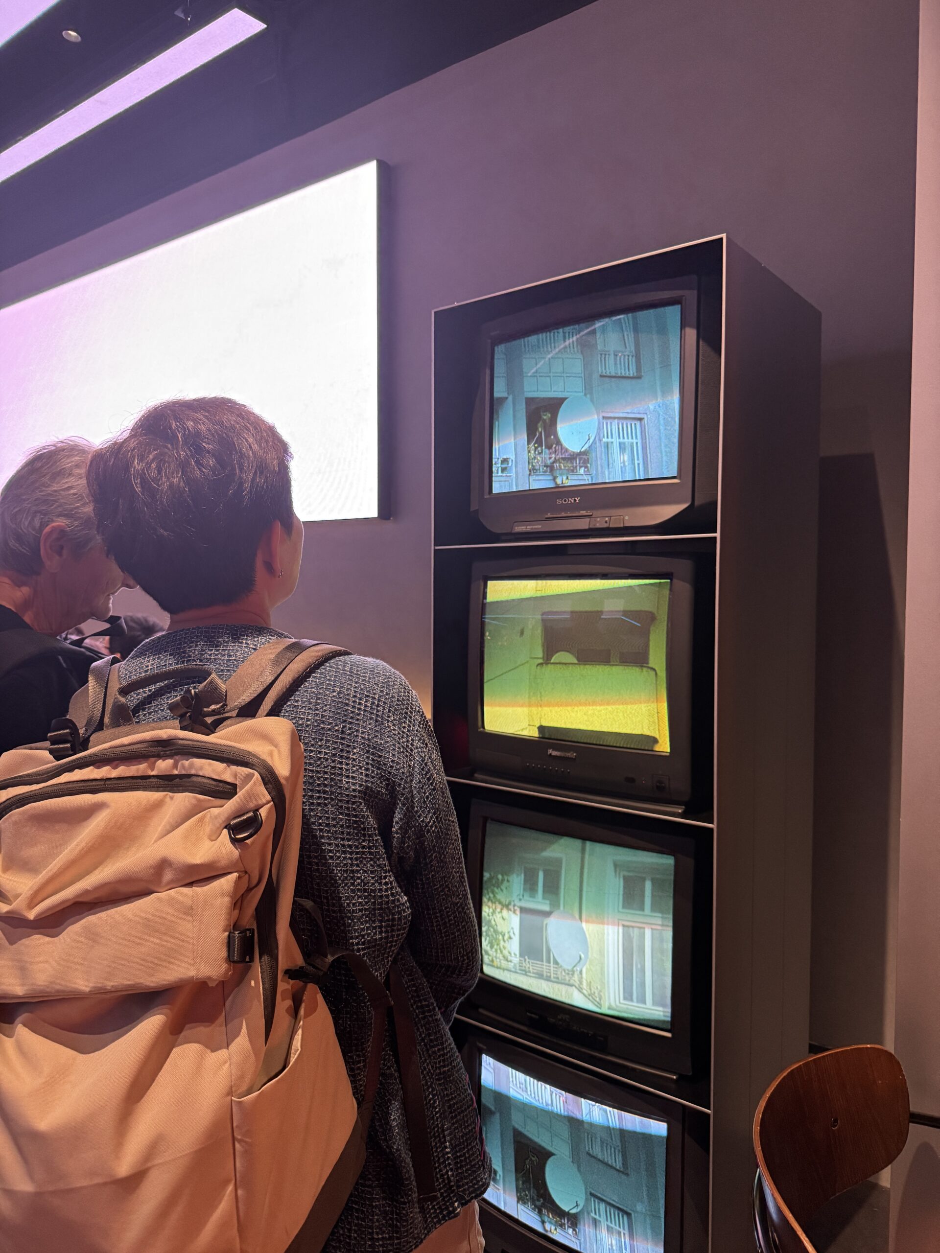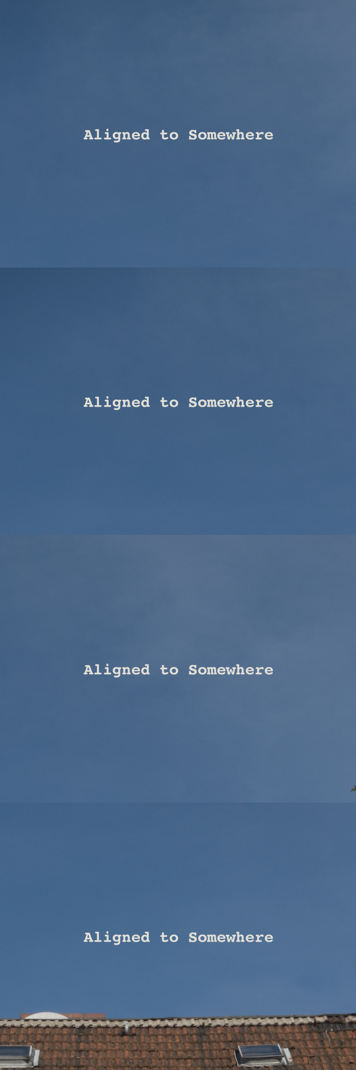 Aligned to Somewhere 由一批攝於柏林街頭的衛星天線照片開始,透過對這些影像的再次觀察,作品將其中的衛星天線視為細小而具指向性的建築姿態。它們經過校準、朝著遠方某個特定角度,在此地與彼處之間形成一種微妙而持續的對齊。