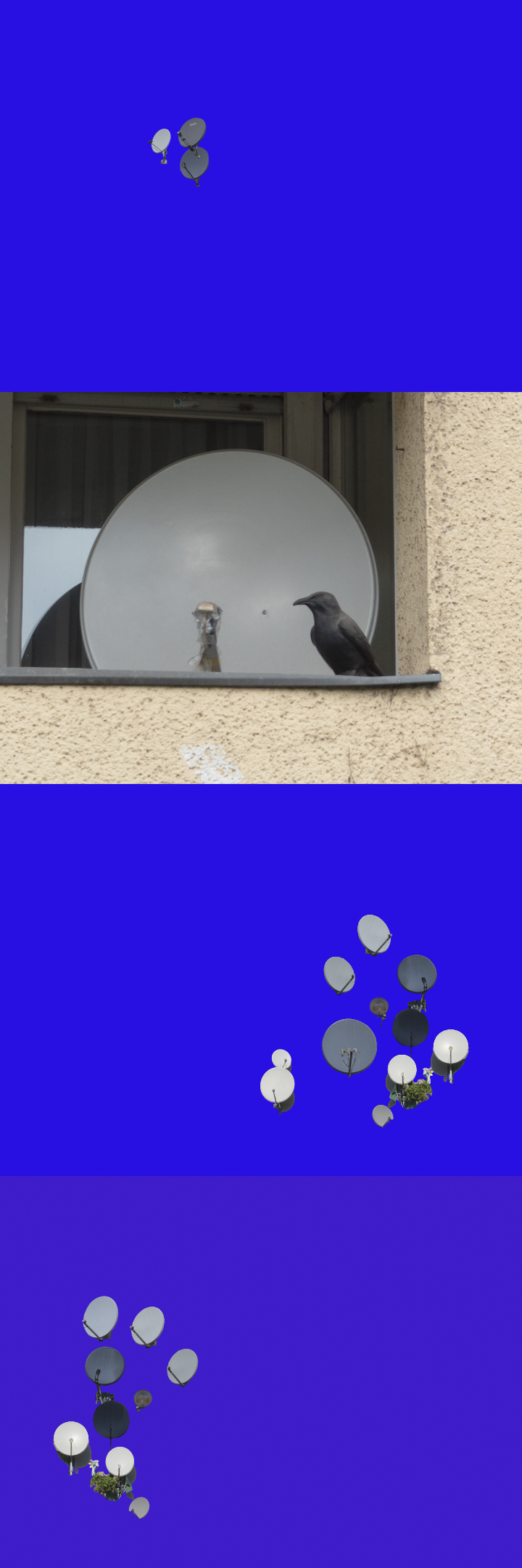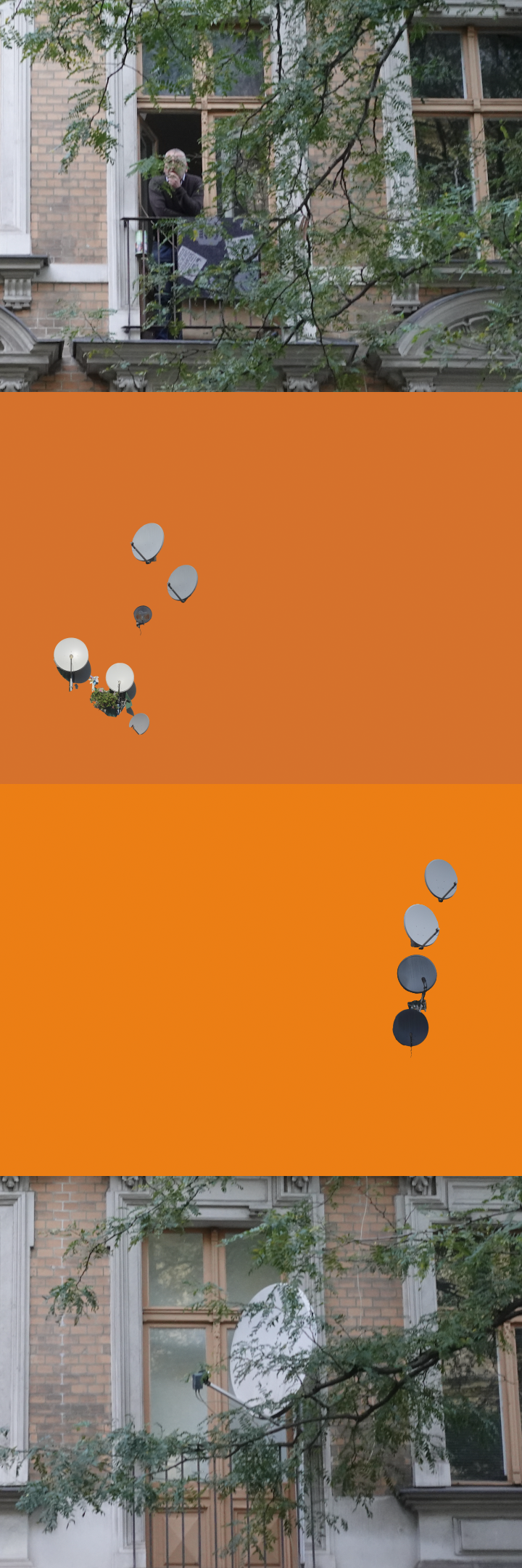 Aligned to Somewhere begins with a series of photographs of satellite dishes taken on the streets of Berlin. The film sees the dishes as small architectural gestures of orientation. Calibrated to face a specific distant angle, they form a subtle and continuous alignment between here and elsewhere.